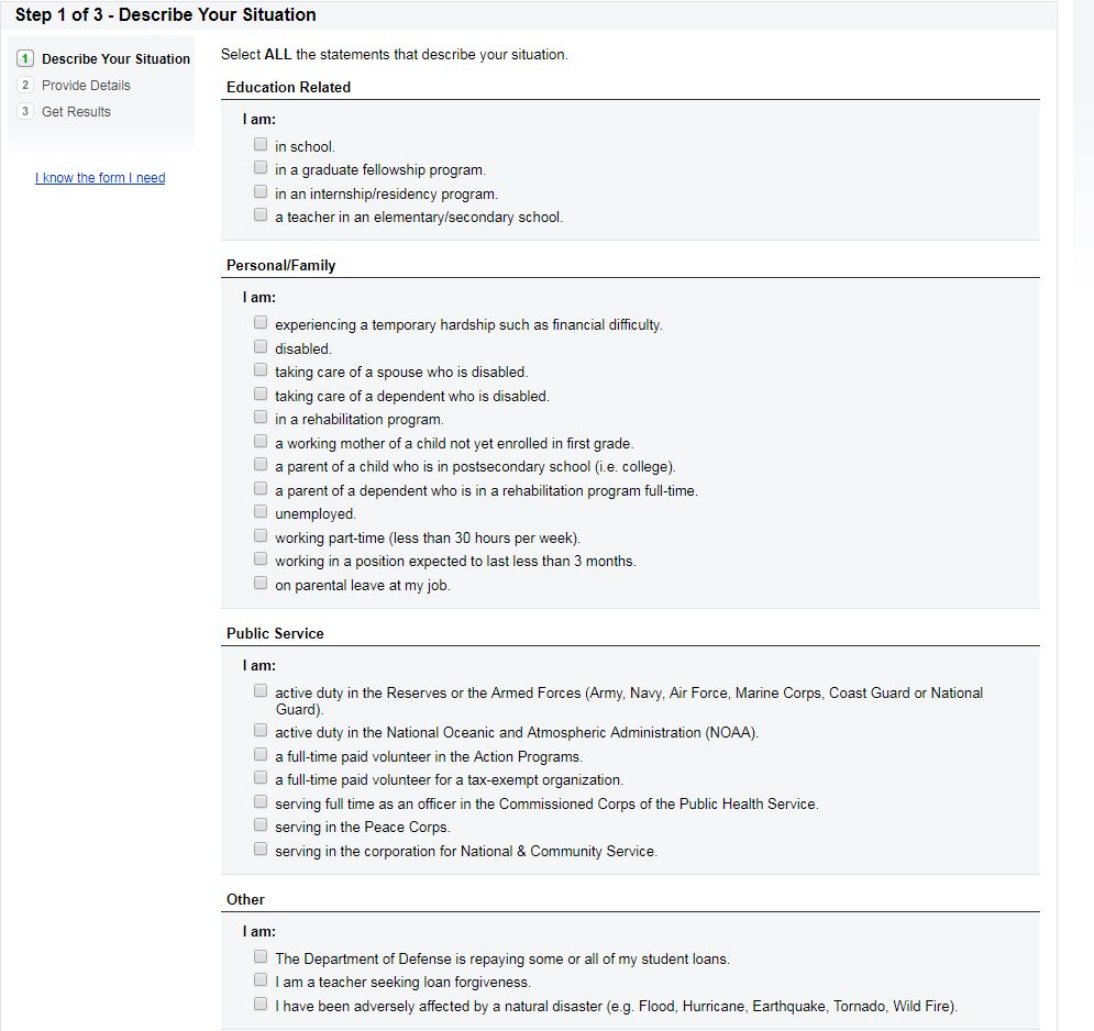 If you don’t know whether you qualify for deferment or deferment, complete an eligibility quiz or questionnaire.