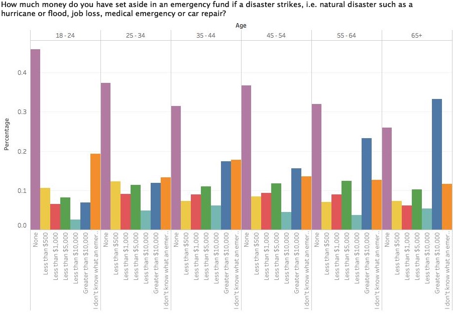 On a more positive note, the study also found that one-third of Americans in their retirement years (65+) have at least $10,000 saved up to tackle an emergency.