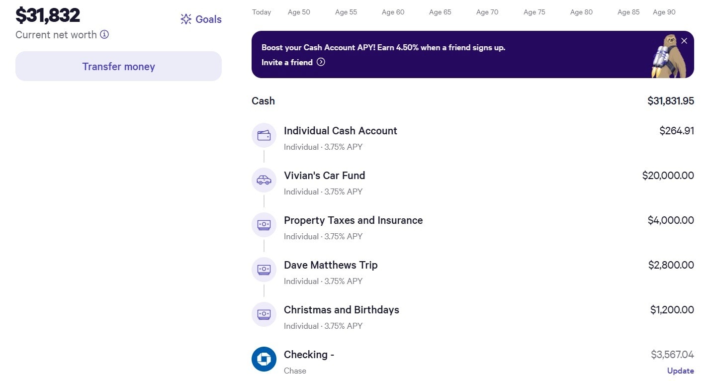 Within my Wealthfront Cash Account, I currently save for the following: